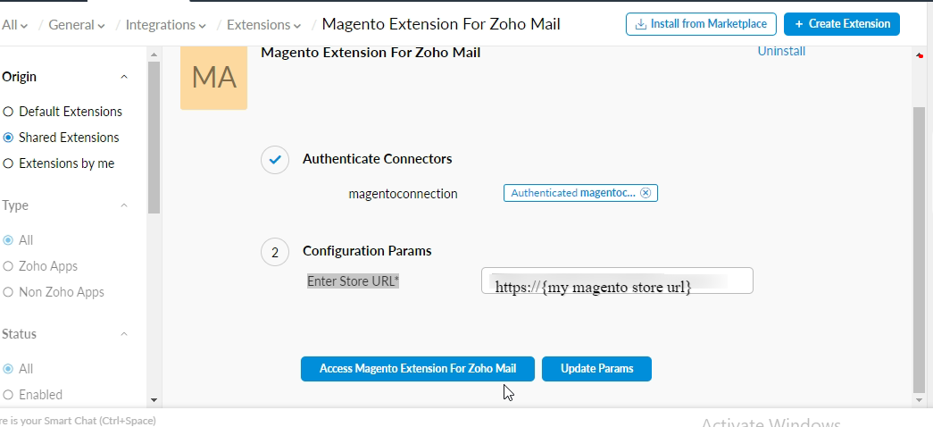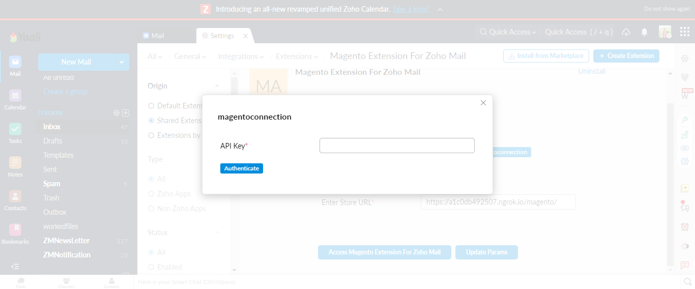Setting up Magento Integration and Aunthentication In Zoho Mail