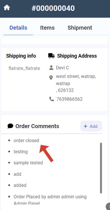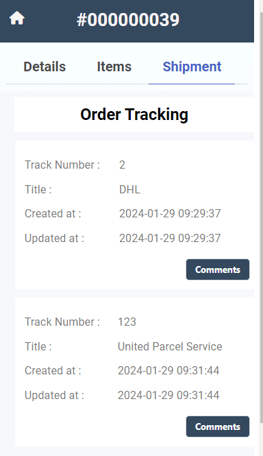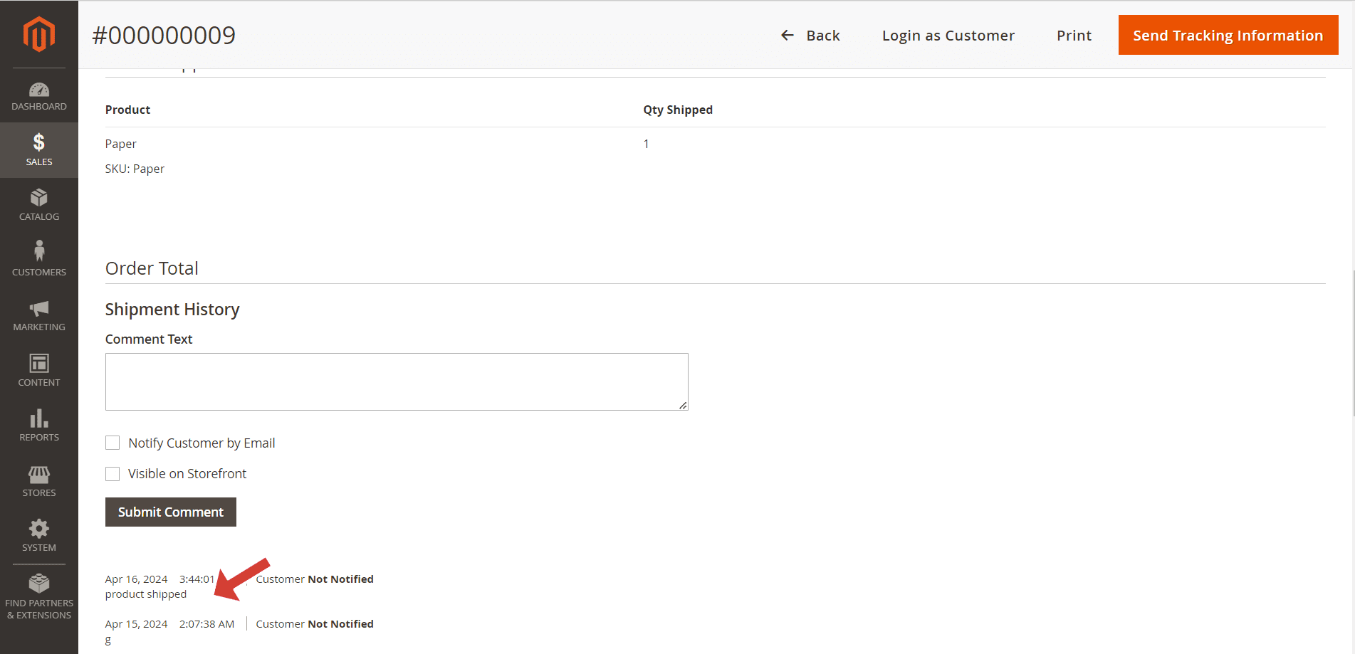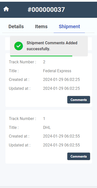 You can then view the comment for that shipment in your Magento store and shipment comment section.