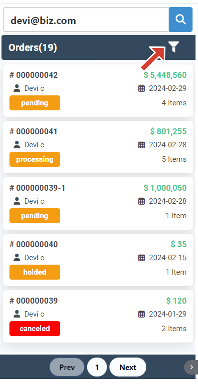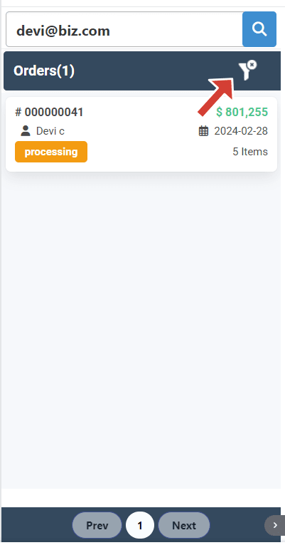 Note:To remove the filtered orders, click on the Clear Filter icon.