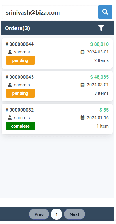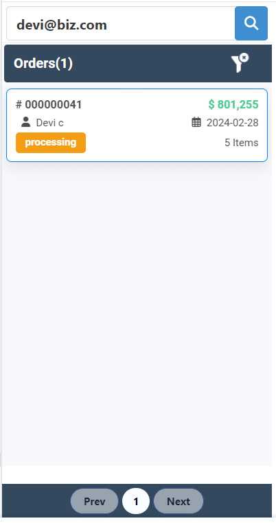 You can globally search for orders using email, and the system will list the orders based on your search criteria.