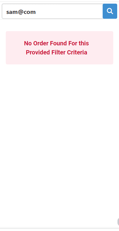 Note:"If the email is not found in the Magento store, an error message will display indicating 'No Order Found' for that specific email."