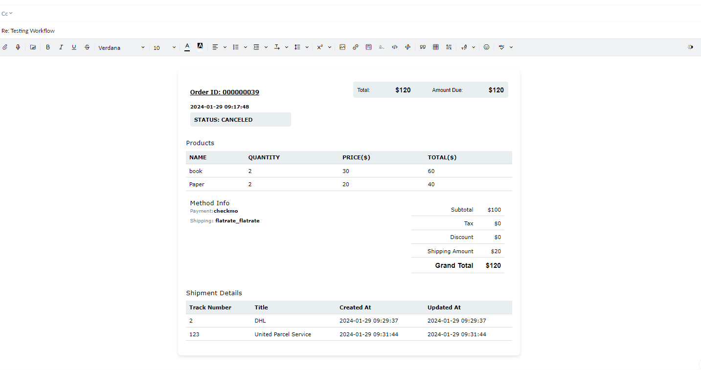 - Incorporating Order and Shipment Details: Effortlessly include comprehensive order and shipment information within your customer communications using our extension in Zoho mail "Reply All" template.